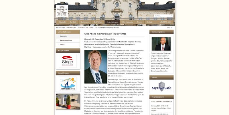 Dr. Raphael Kromer hält am 7. Dezember 2016 um 18 Uhr zum Thema Big Data einen Vortrag im Business Club Stuttgart.