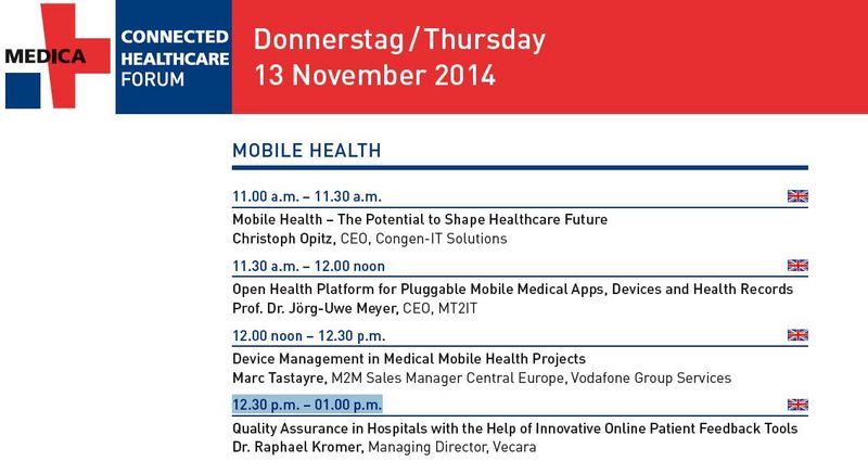 Wir stellen auf der weltweit größten Medizinmesse "MEDICA" unsere Tell´em box App vor. Dr. Raphael Kromer wird auf der Messe zwei Vorträge zum Thema Qualitätssicherung in Krankenhäusern halten.