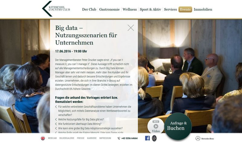Dr. Raphael Kromer hält am 17. Juni 2016 um 19 Uhr zum Thema Big Data einen Vortrag im Kitzbühel Country Club.